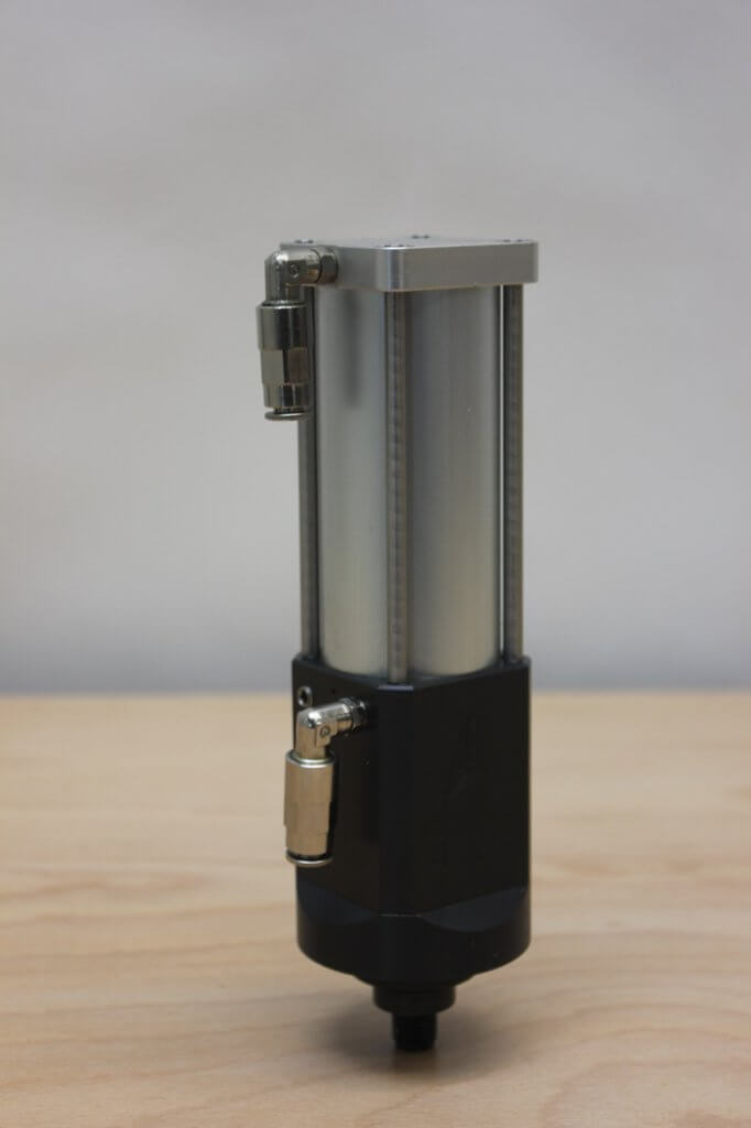 The hydropneumatic power cylinder KC1 is the smallest variant in the power cylinder range. Due to its compact design in combination with high punching force and stroke, this power cylinder is very suitable for driving various tools for lighter machining of metals and plastics. You can find possible applications of this power cylinder here. The engineering department is happy to help you convert your challenge into an efficient and reliable production process.